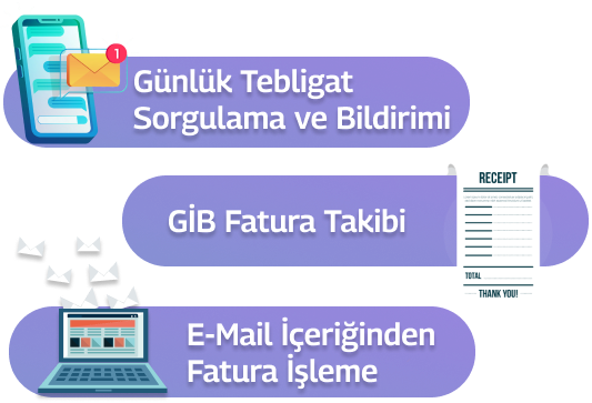 E-fatura, fiş, tebligat ve banka işlemlerini otomatik takip eden bir muhasebe ve finans yönetim platformudur. İş yükünü azaltır ve zaman kazandırır.